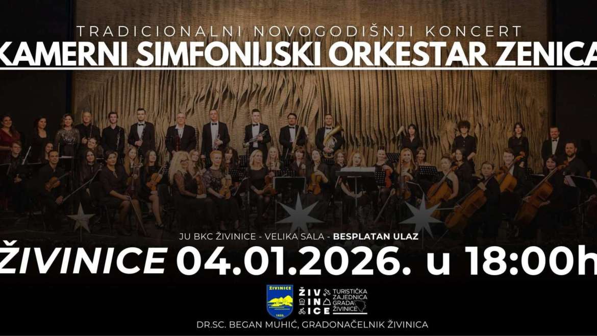 U okviru novogodišnjeg programa, u Velikoj sali JU BKC Živinice biće održan tradicionalni novogodišnji koncert klasične muzike.